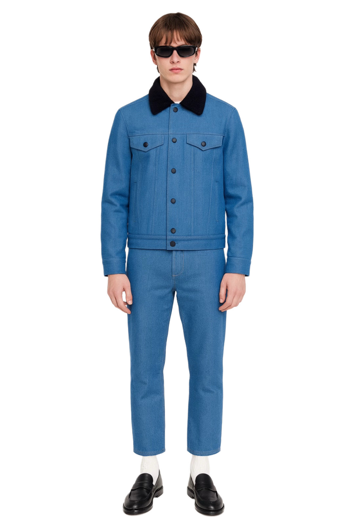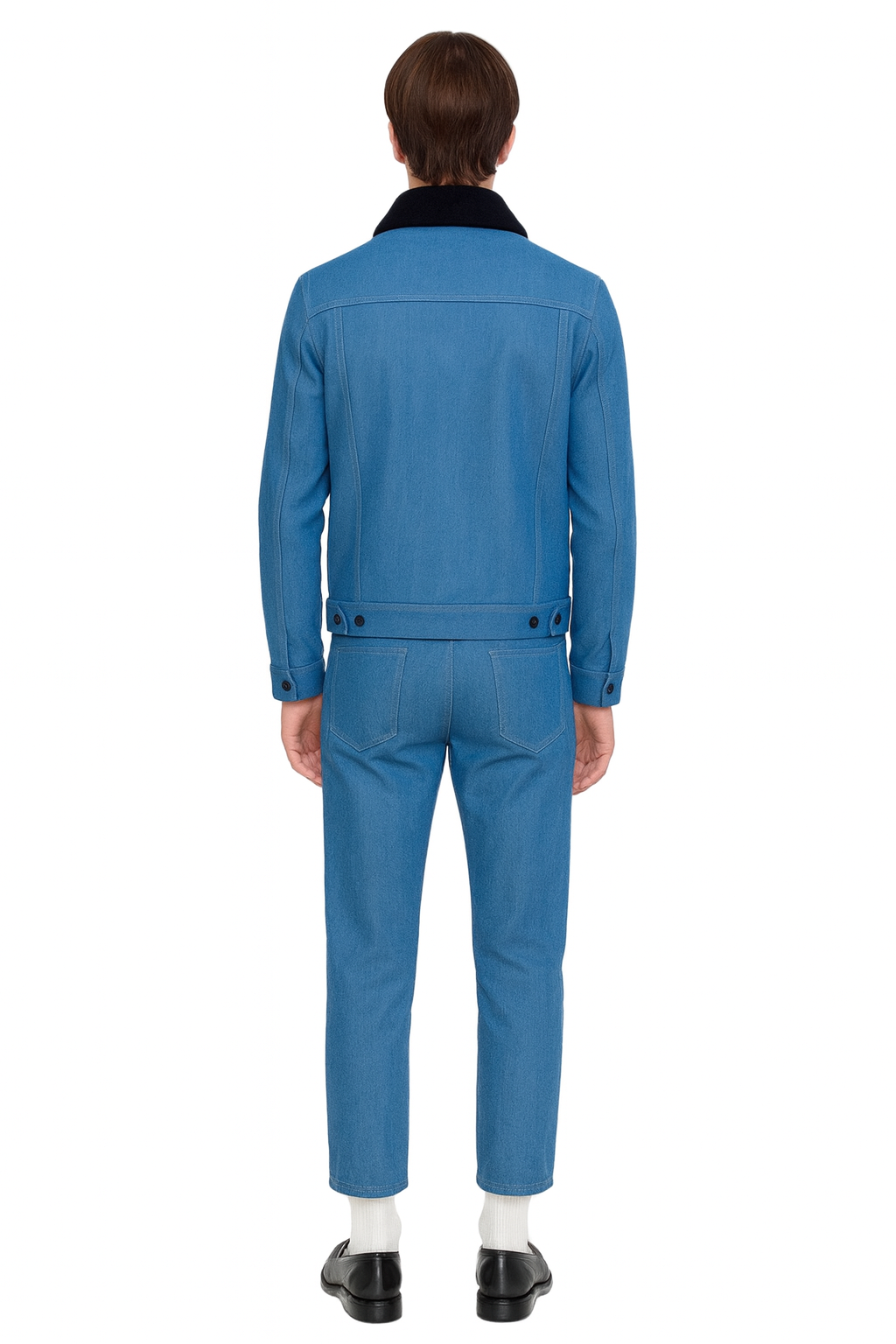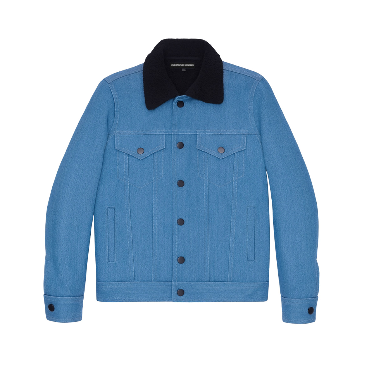 - Color: Blue with black shearling collar