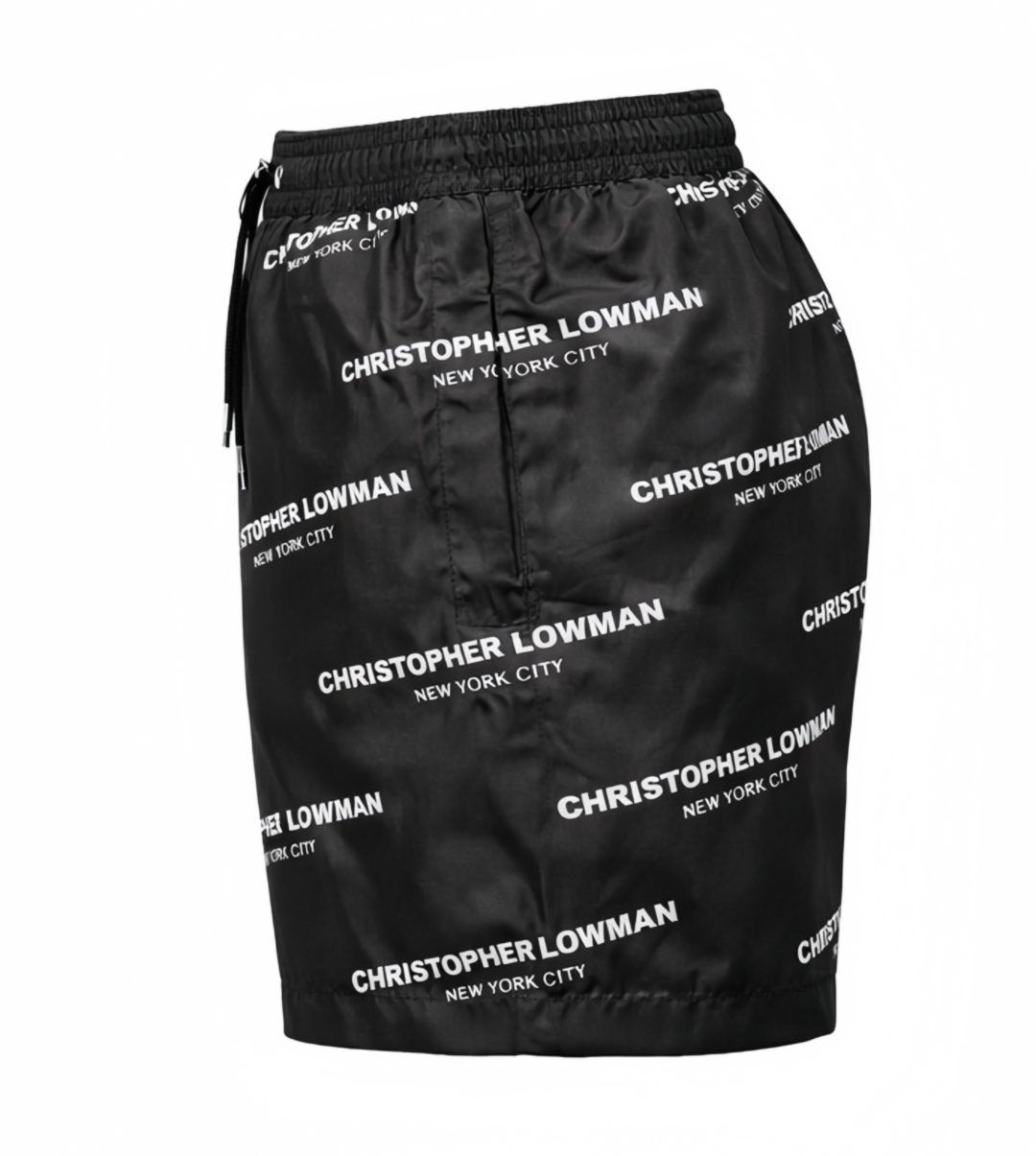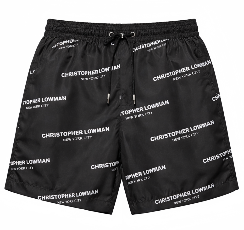 The Logo Nylon Trunk Shorts blend lightweight performance with Christopher Lowman’s bold graphic identity. Designed with an all-over Christopher Lowman New York City typographic print, the shorts introduce movement and visual rhythm across a sleek nylon surface.