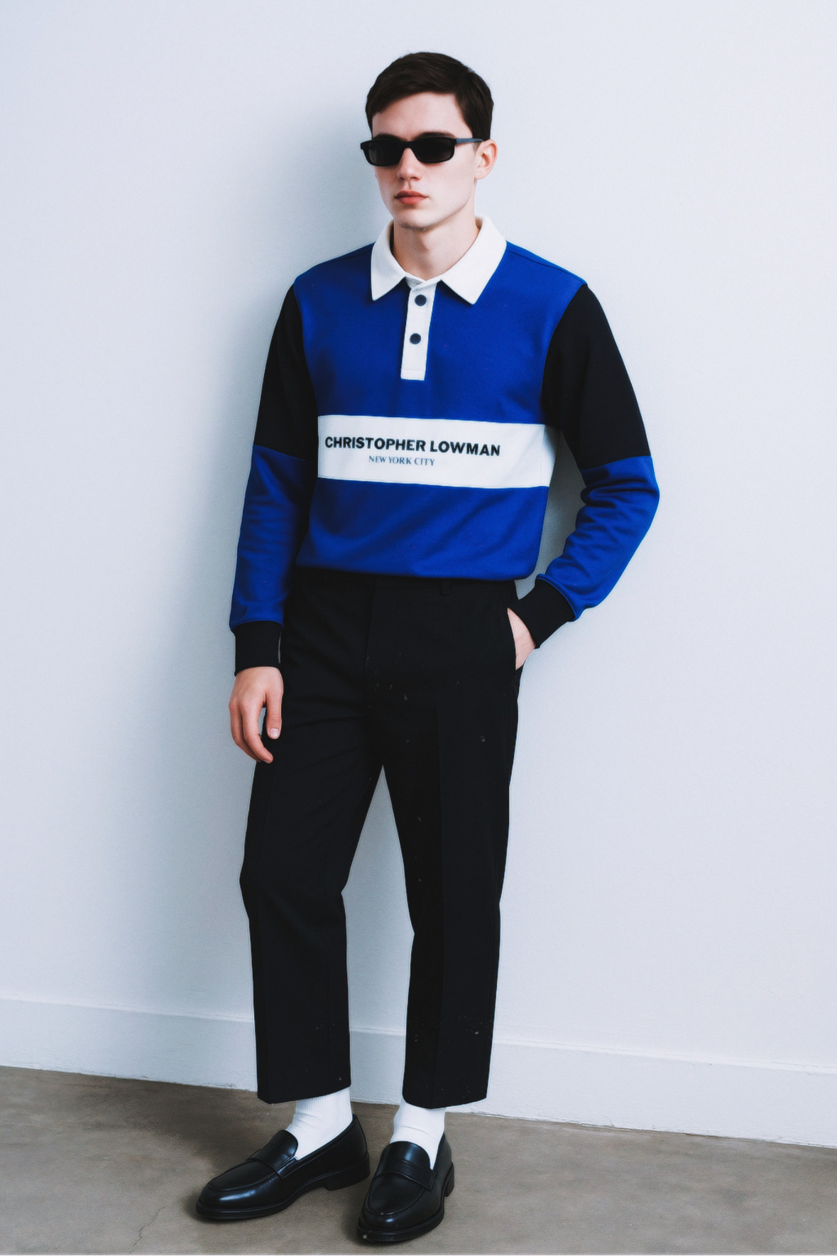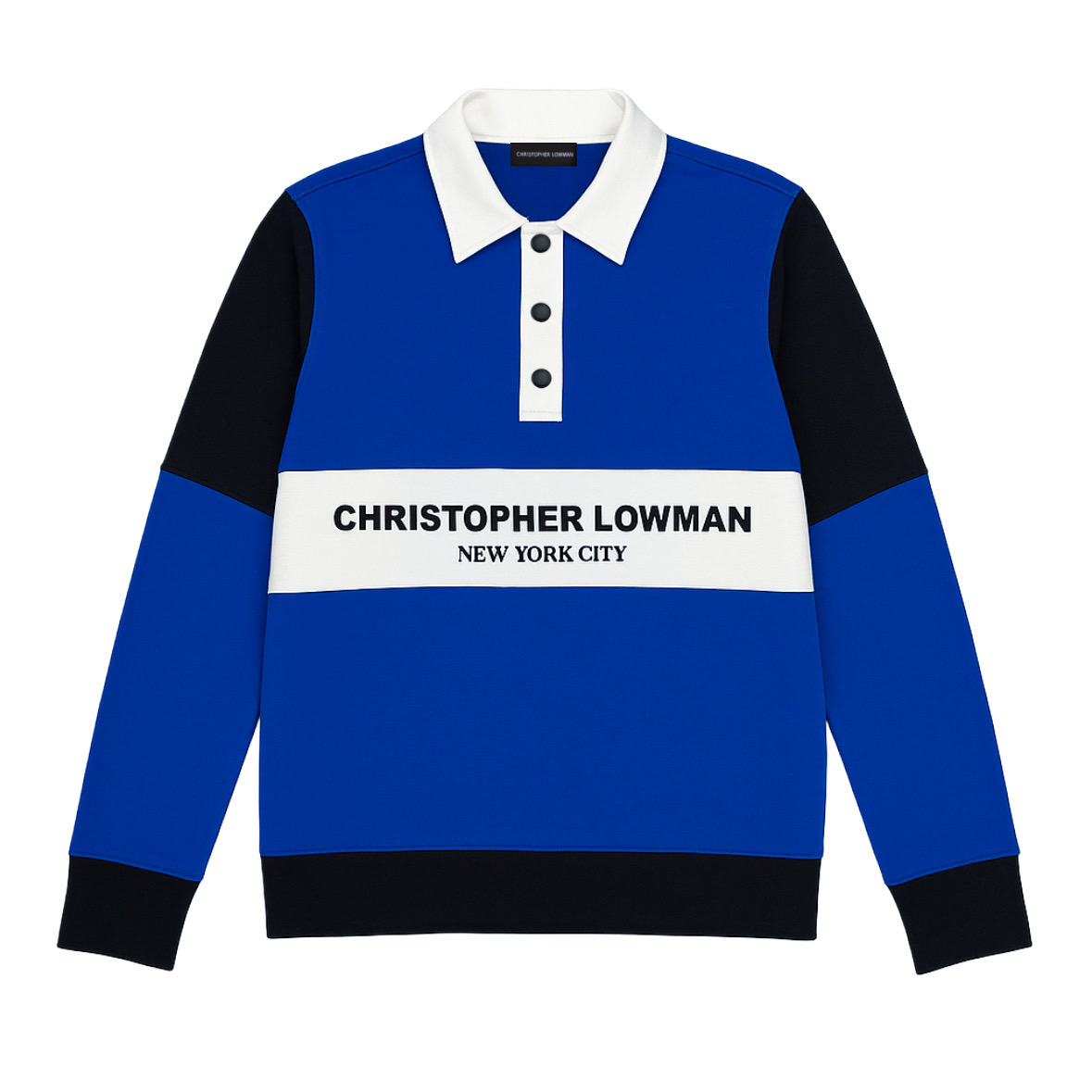 A contemporary interpretation of the classic rugby polo, this long-sleeve sweatshirt is designed with a relaxed, oversized silhouette in a soft cotton-blend fabric. The style features a traditional collar, a three-snap placket with black matte hardware, and modern seaming details throughout. Finished with banded cuffs and hem for structure and ease, it balances sport heritage with elevated everyday wear.