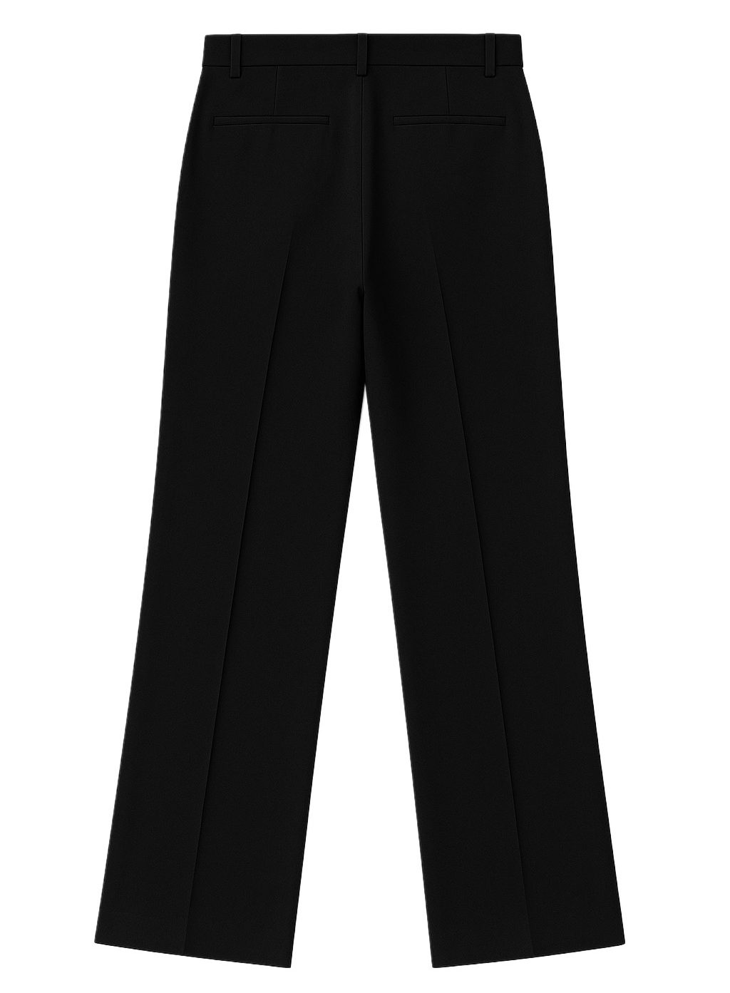 Crafted from premium 100% gabardine, this tailored black trouser delivers a refined drape with a smooth, structured finish. Designed with a straight-leg silhouette, the pant sits clean through the waist and hip, creating a sharp, elongated line from top to hem.