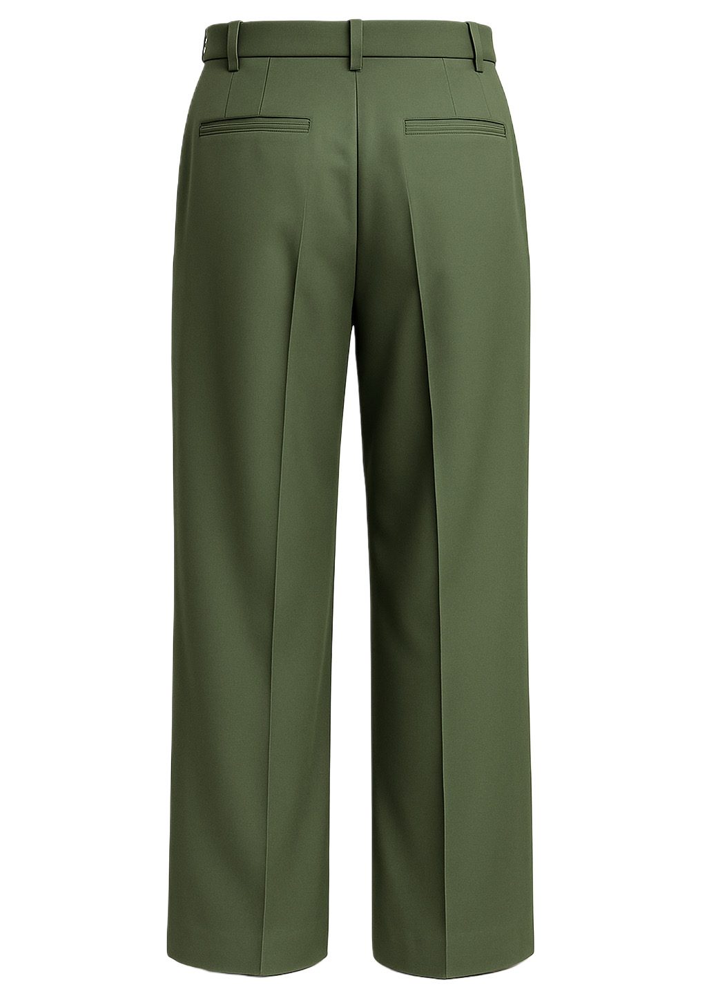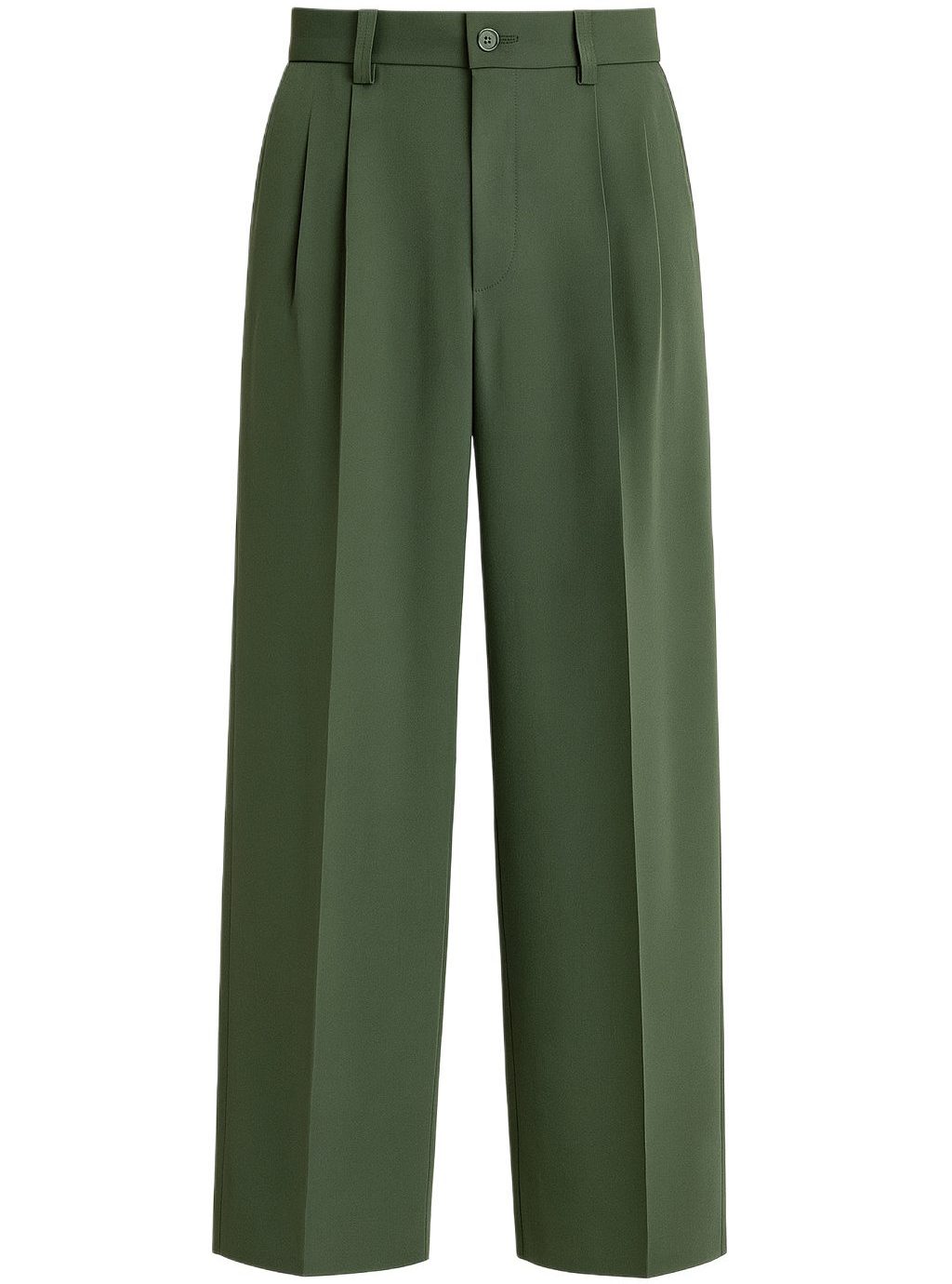 Elevated and effortless, these wide-leg tailored trousers are designed for a fluid, modern silhouette. Cut in a deep olive tone, the pant drapes cleanly from the waist with a soft sheen that enhances its refined movement. Precise front pleats open into a relaxed, straight leg, creating a balanced shape that feels both contemporary and timeless. Perfect for elevated everyday wear or paired with knitwear for a relaxed luxury look.
