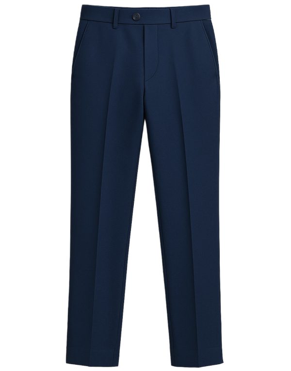 A refined essential designed to complete the tailored navy blazer. These matching suit trousers are crafted from the same premium suiting fabric, delivering a clean drape, smooth finish, and a sharp, modern silhouette. The pant features a streamlined straight-leg cut with crisp front creases, offering structure while maintaining comfortable movement.