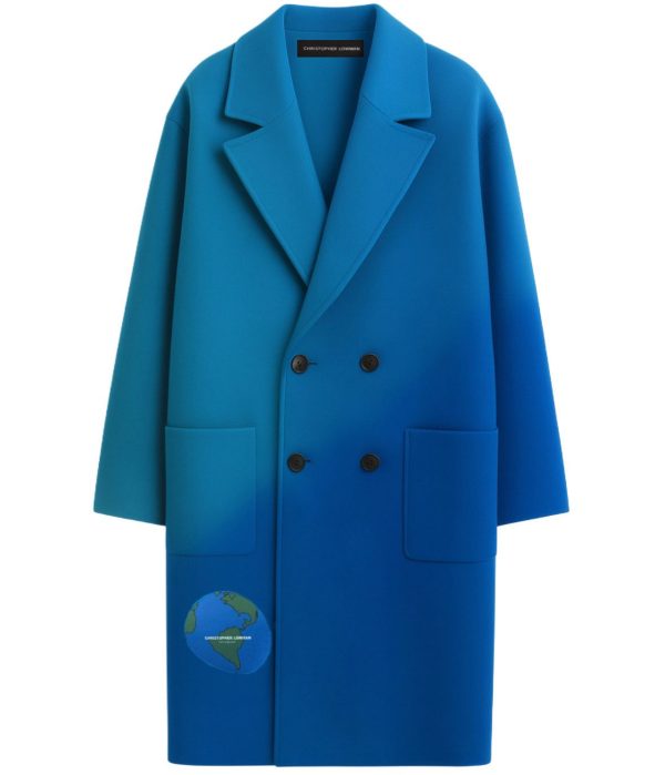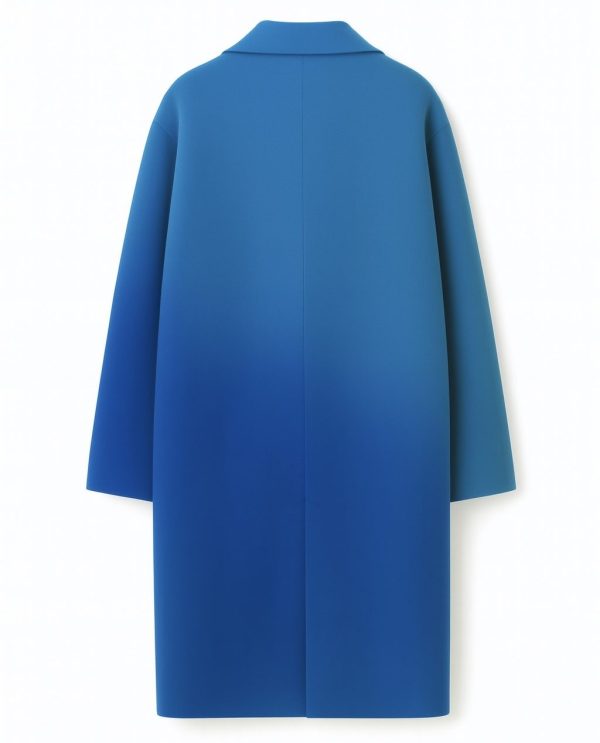 A statement outerwear piece from Christopher Lowman New York City, this double-breasted gradient coat elevates classic tailoring with a bold modern vision. Designed in a rich two-tone blue fade, the coat offers a striking visual transition from turquoise to deep cobalt, creating a smooth, architectural silhouette. Crafted with a clean