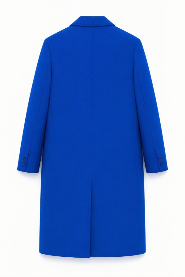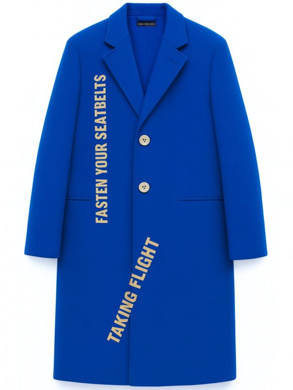 Introducing the Taking Flight Overcoat — a bold statement piece from Christopher Lowman New York City. Crafted in a striking aviation-blue wool blend, this tailored overcoat merges classic menswear structure with the brand’s signature runway storytelling. The coat features clean notch lapels, a smooth front closure with contrast buttons, and